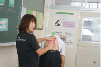 学校に行く前は、「中学生は騒がしくて授業にならないのでは」と心配していましたが、今の子ども達は私のイメージと違いしっかりしていて、安心して授業が出来ました。テーピングを知っている子が少ない分教え甲斐もあり、MTTが思った以上に楽しくて、参加してよかったと思っています。